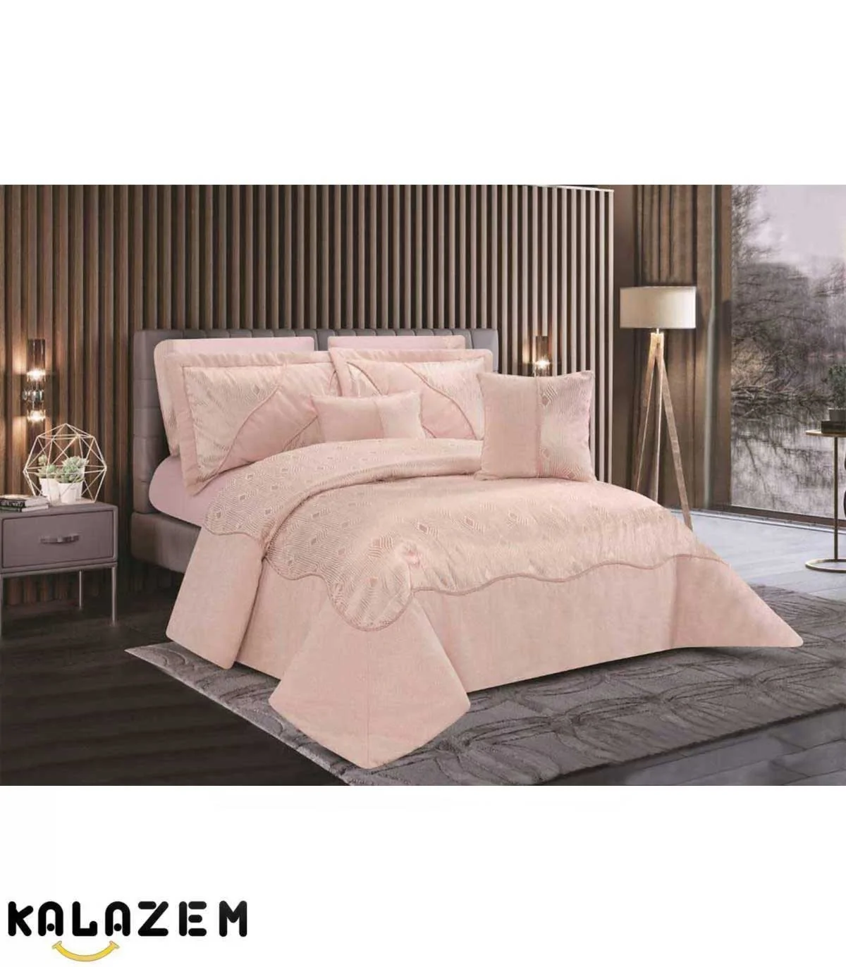 سرویس روتختی لوکس دونفره 8/هشت تکه با جنس نخ پنبه کتان به رنگ صورتی، با طرح سلطنتی از برند لاویتا(LAVITA) مدل انزو(ENZO) است که یکی از شرکت های برتر در تولید روتختی و محصولات خواب می باشد.