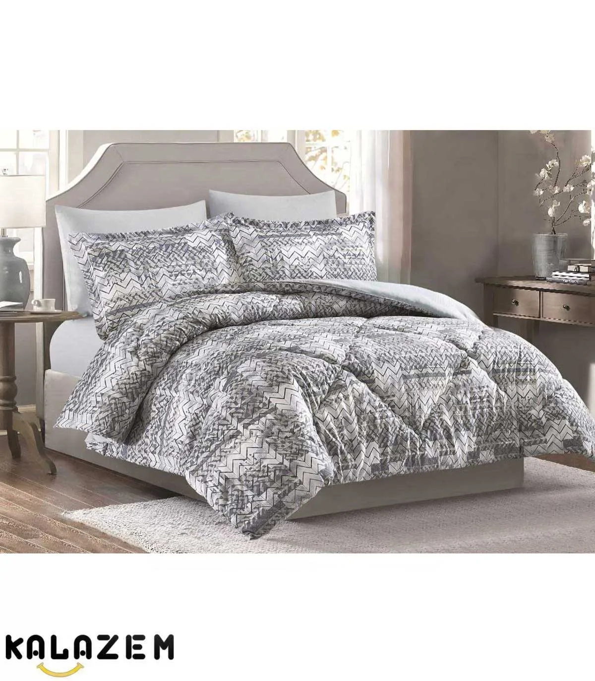 این روتختی اسپرت دونفره لاکچری و خاص شامل یک لحاف دو رو به سایز 240*260 سانتی متر می باشد، که یک طرف آن به رنگ فیلی با دوختی با کیفیت و تمیز به شکل هندسی لوزی می باشد و طرف دیگر پارچه آن به شکل نقوش هندسی و به سبک مدرن و به رنگ طوسی می باشد.