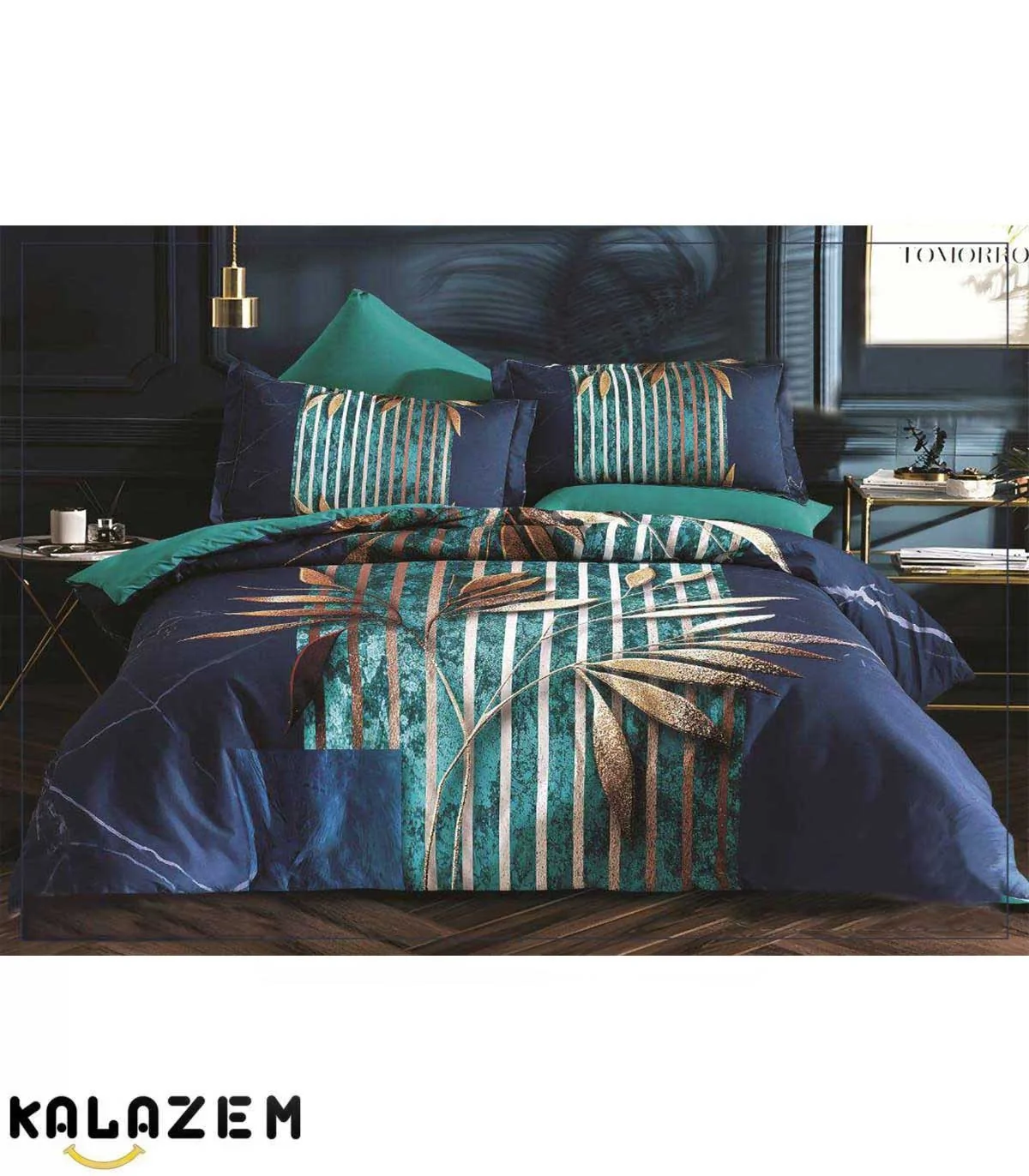 با روتختی شیک دونفره 6 تکه محصول کشور امارات برند لاویتا (LAVITA) مدل کارولینا (CAROLINA) ظاهر اتاق خواب خود را دوست داشتنی کنید! این روتختی با ترکیب رنگ سرمه ای_سبز و طرح انتزاعی برگ برای اکثر دکوراسیون اتاق خواب ها مناسب است.