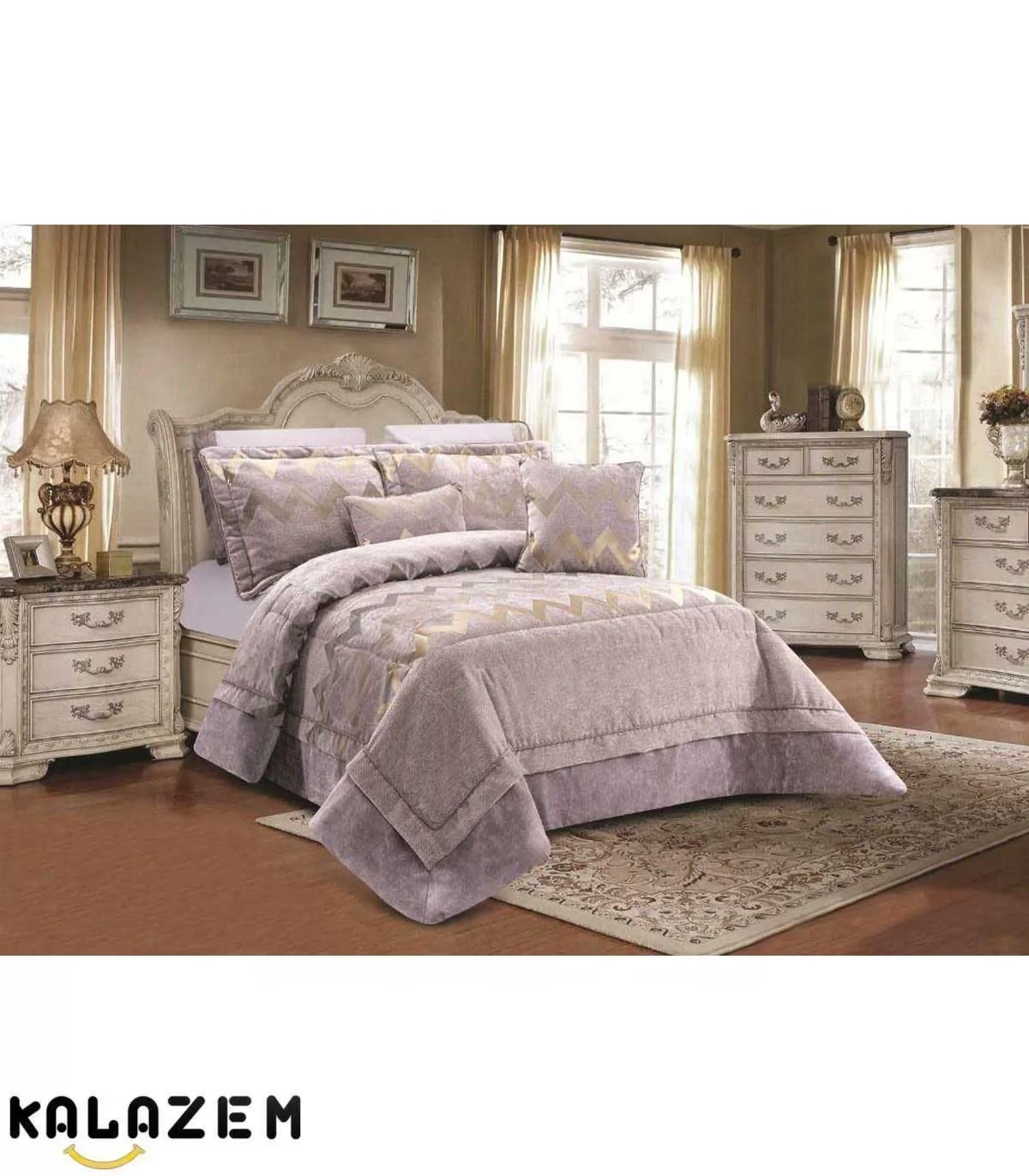 این سرویس روتختی دونفره شیک شامل یک لحاف سایز ۲۶۰×۲۴۰ سانتی متر است که دارای پارچه ای با پس زمینه ای به رنگ طوسی روشن با طرحی به شکل زیگزاگ می باشد.