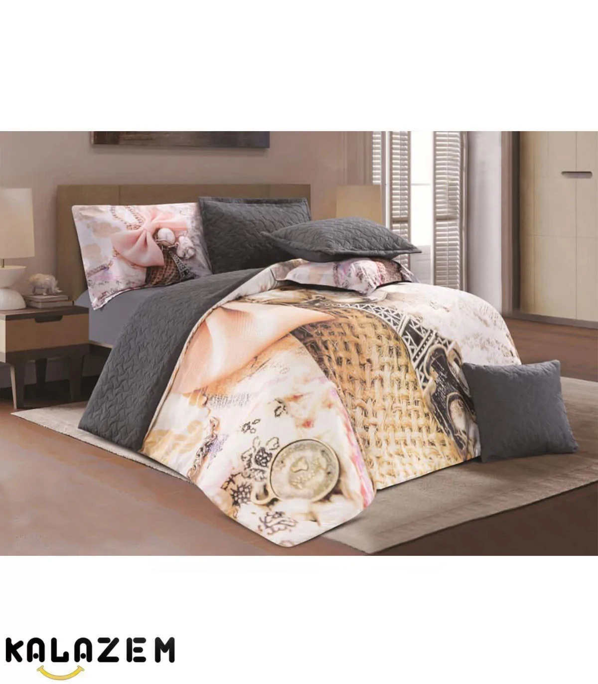 همچنین این روتختی طرح دار دونفره مدرن دو رو می باشد که با استفاده از رنگ سربی در یک طرف و طرح پاپیون و برج ایفل در طرف دیگر، حس زیبایی و شیک بودن را به اتاق خواب شما می‌بخشد همچنین چاپ 3 بعدی آن جلوه خاصی را به اتاق خواب شما خواهد داد.