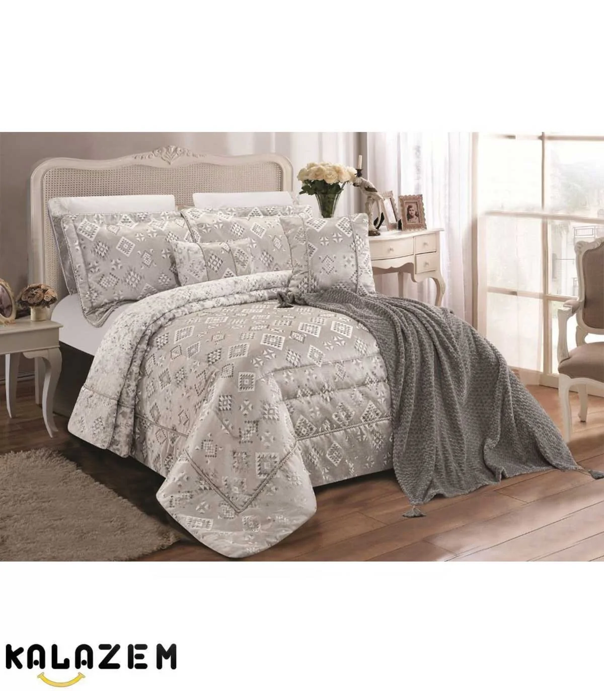 یکی از مزایای این سرویس روتختی شیک دارا بودن یک شال مخملی زیبا و شیک است و به رنگ طوسی می باشد که ظاهری مدرن و جذاب به این سرویس روتختی دونفره می بخشد.
