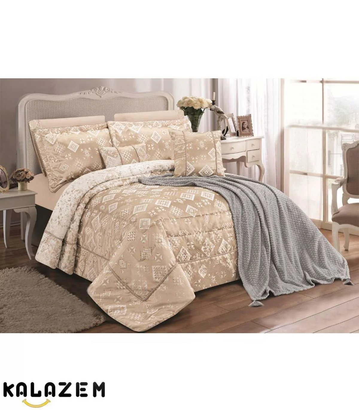 روتختی شیک عروس دونفره 8/هشت تکه دو رو و جنس کتان به رنگ قهوه ای روشن با طرحی مدرن از برند لاویتا (LAVITA)مدل چیچک (CHICHAK) است که یکی از برندهای معروف در تولید روتختی می باشد.